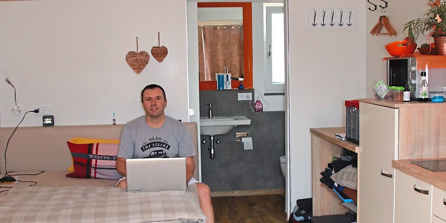 Gelb, grün, rot und orange. Die kleinen Häuschen, die sich geschützt vor Blicken auf einem Grundstück an der Moosfürther Straße aneinanderreihen, haben den Charme von Strandhäusern am Meer. Ihnen gegenüber liegen rustikale, kleine Holzhütten, als stünde man in einem Saunapark in Finnland. Als Viktor Bäcker das Tiny-Village in Wallersdorf entdeckte, war er begeistert. „Da hast du alles auf engstem Raum“, sagt er.